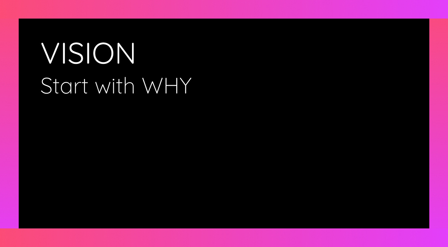 Vision defines the purpose behind your company’s existence, providing a foundation for everything else. Without a clear vision, it’s impossible to align positioning or storytelling.