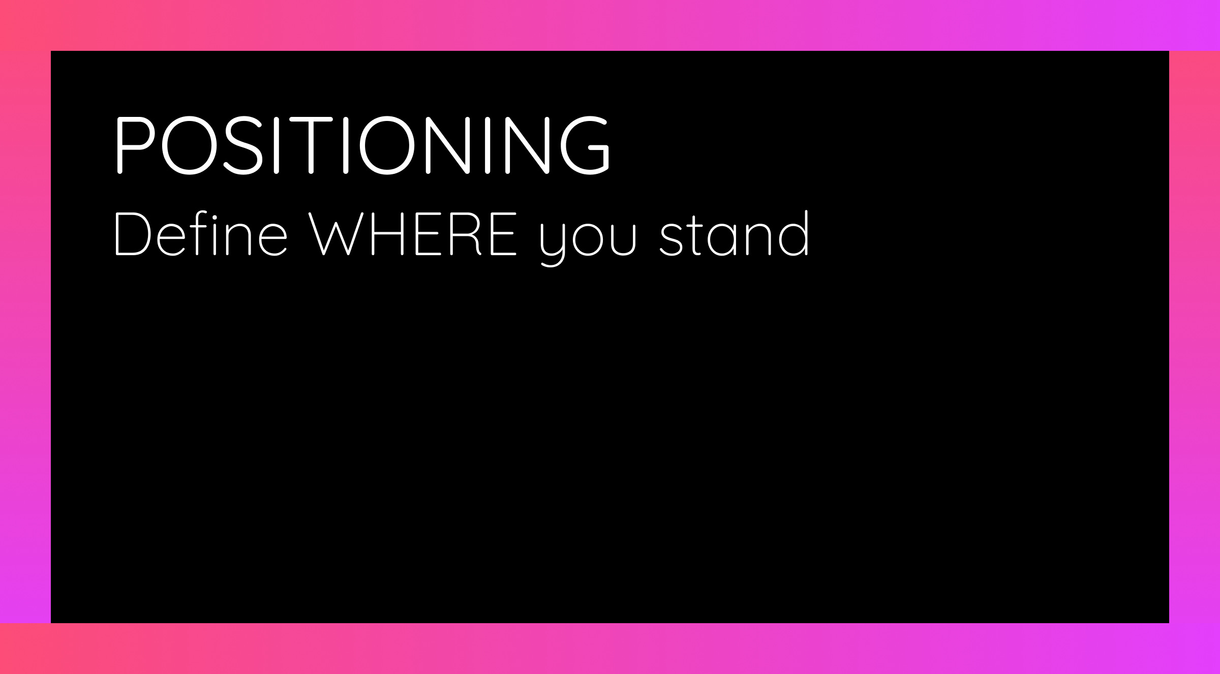 Positioning identifies your competitive edge and how your company’s vision translates into practical value for specific audiences.